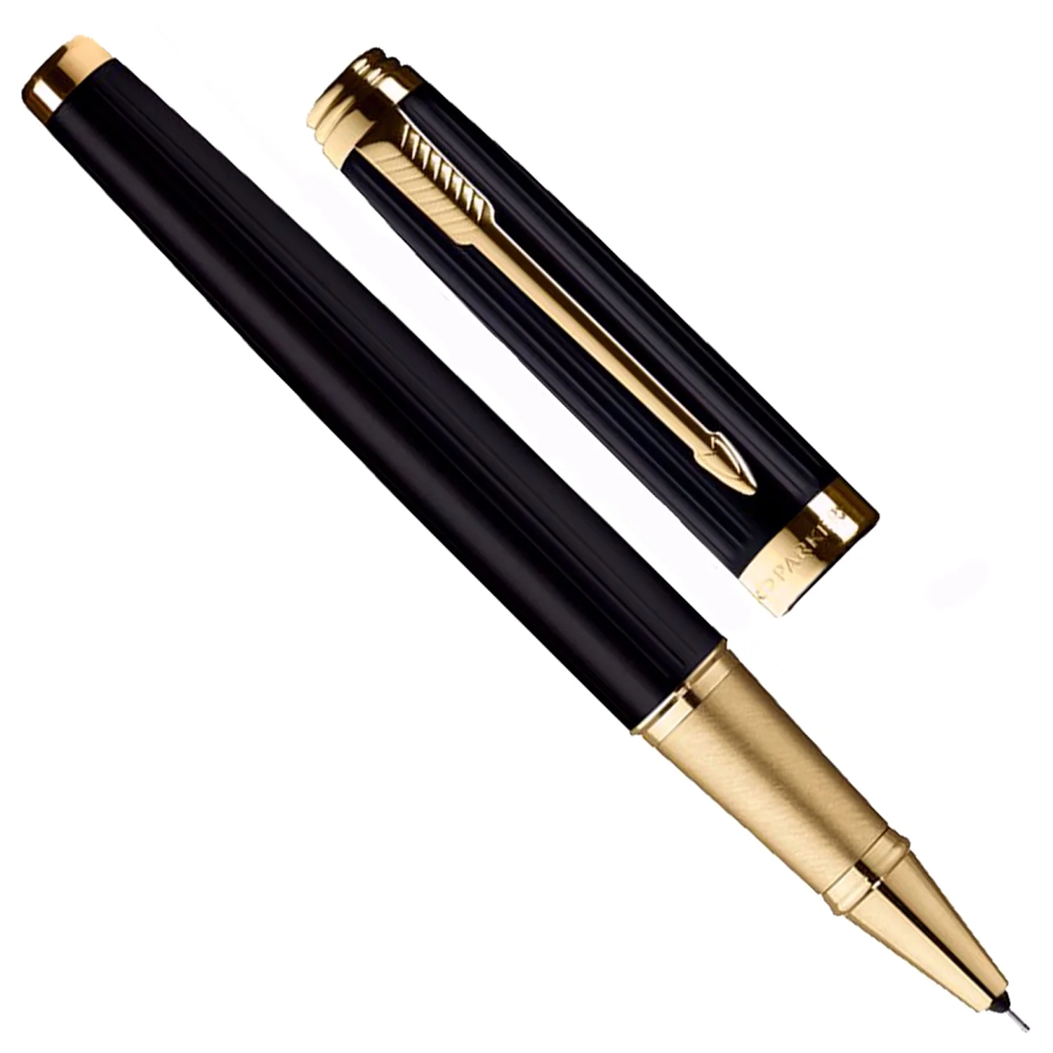 Parker Ambient Lacque Black Gold Trim Fountain Pen and Roller Pen Set