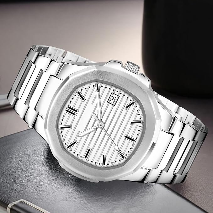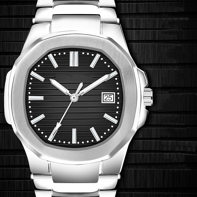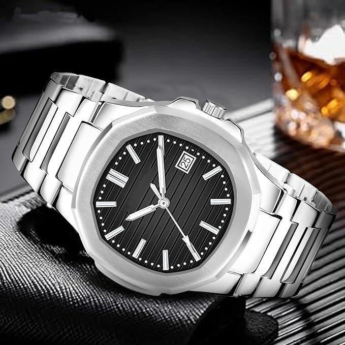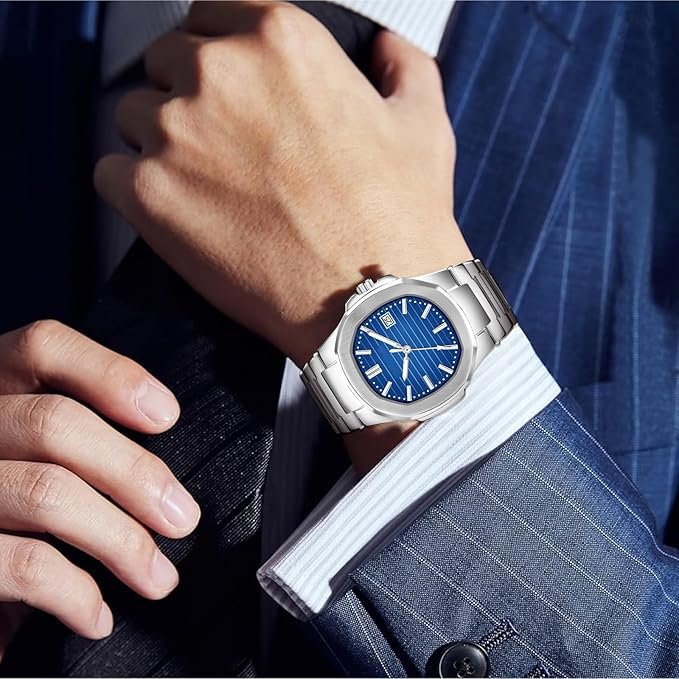 Styledose  Analog Date Functioning Display Men’s Watch- Dial Color Silver , Blue & Black- Stainless Steel Chain Premium Wrist Watch