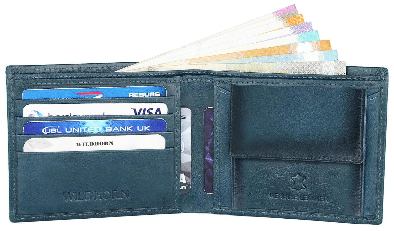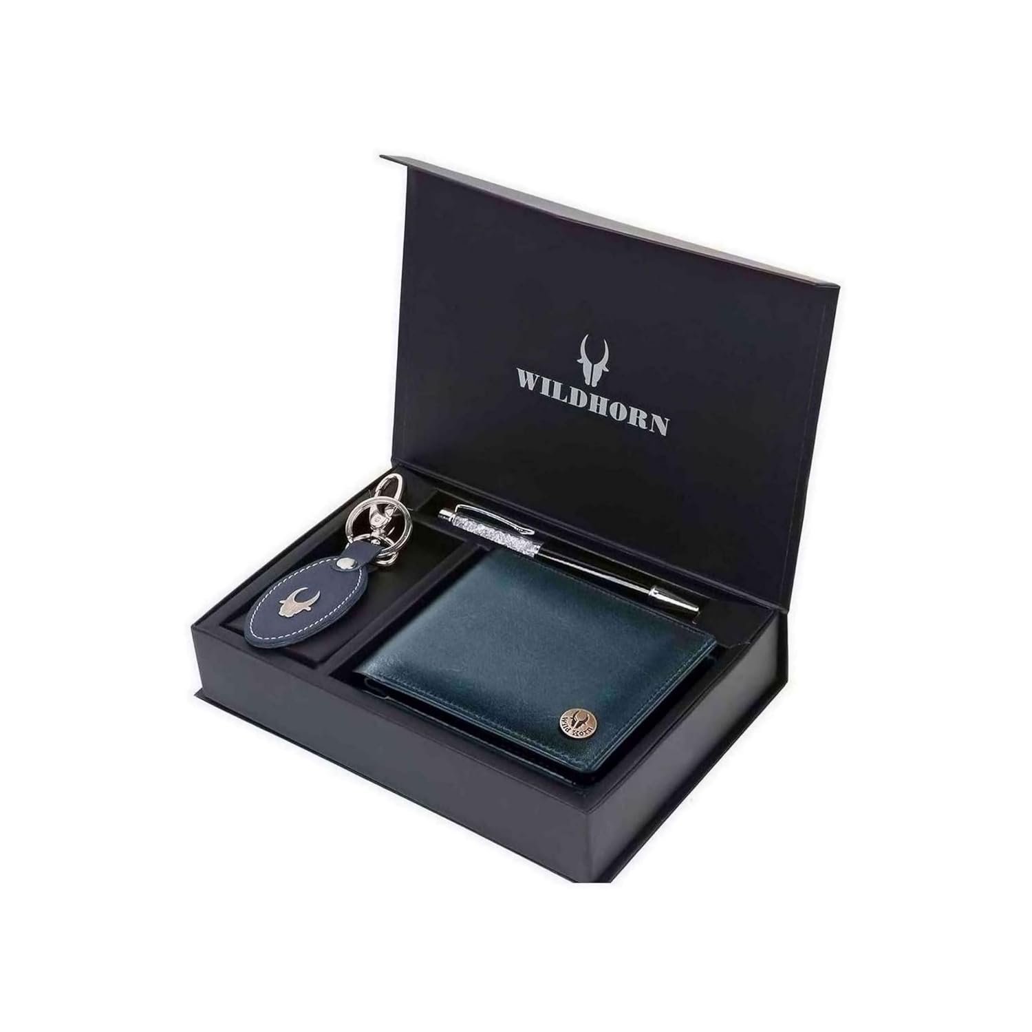 WildHorn Leather Wallet, Keychain & Pen Combo I Gift Hamper for Men (Blue Crunch)